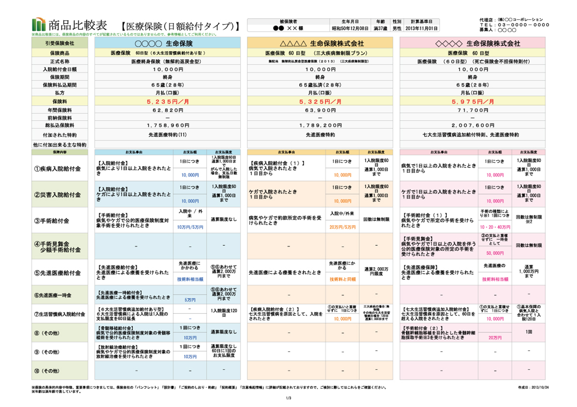 - ● 同じフォーマットだから、各社の保障の違いがすぐにわかる