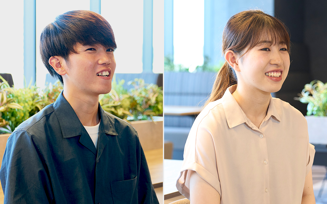 Y:サポートする仕事を希望していましたが、インターンシップに参加したときに出身校の先輩社員が多く、将来のビジョンが見える安心感が大きかったです。